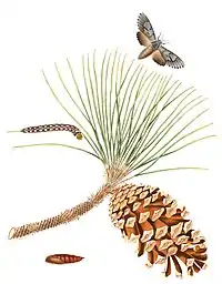 Larvele au ca principală sursă de hrană specii de Pinus, incluzând Pinus taeda și Pinus pinaster.