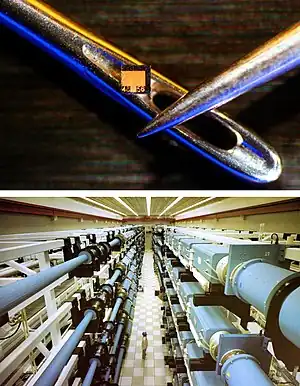 Un exemplu de laser microscopic (sus) și unul gigantic (jos).