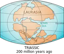 Nu trebuie confundat cu Laurussia, continent din Devonian, anterior formării Pangeei.