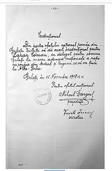 - Rezoluțiunea Adunării Naționale de la Alba Iulia, pe site-ul Institutului Național al Patrimoniului, accesat la 6 mai 2018
