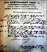 - Art. 1. Autorii de tot felul de scrieri, compozitori de muzică, sau desenatorii, cari vor săpa sau litografia tablourile ori desenurile lor, în tot cursul vieții lor, se vor bucura ca de o proprietate a lor de dritul excluziv de a reproduce și a vinde operile lor în tot Principatul, sau de a trece către alții această proprietate a lor, fiindu-le acest drit recunoscut după legile în ființă.