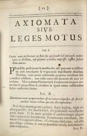 Prin cantitate de mișcare Newton înțelegea ceea ce astăzi numim impuls, adică mărimea vectorială egală cu produsul dintre masă și vectorul viteză.