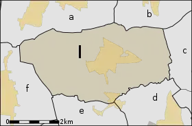Suprafața totală a comunei este de 13,15 km². Localitățile limitrofe sunt: