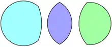 Aria unei lentile asimetrice formată din cercuri cu razele R și r și distanța d între centrele lor este[1]