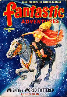 Nuvela lui del Rey "When the World Tottered" a fost pe coperta revistei din decembrie 1950 Fantastic Adventures, ilustrație de Robert Gibson Jones