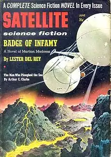 Romanul lui del Rey Badge of Infamy a fost pe coperta revistei din iunie 1957 Satellite Science Fiction