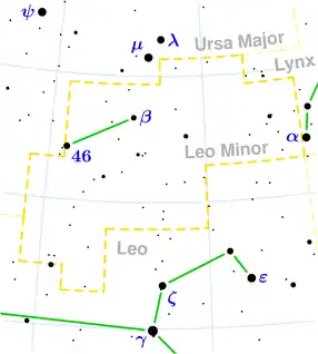 ![]() Harta constelației Leul Mic (click pentru mărire) | |
