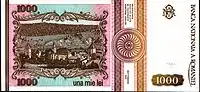 Bancnotele de 1000 lei și 5000 lei au două variante asemănătoare, prima din 1991 (fără stemă) și a doua din 1993 (cu stemă).