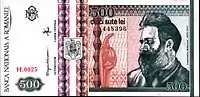 Bancnota de 500 lei are două variante diferite, prima din 1991 și a doua din 1992.