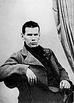 Lev Tolstoi (sau Contele Lev Nikolaevici Tolstoi,[19] rusă Лев Никола́евич Толсто́й; n. , Krapivenski uezd(d), Gubernia Tula(d), Imperiul Rus – d. , Astapovo(d), Q20084572(d), Regiunea Lipețk, Rusia) a fost un scriitor rus. Lev Tolstoi este considerat unul dintre cei mai importanți romancieri ai lumii.[20] Alături de Fiodor Dostoievski, Tolstoi este unul dintre scriitorii de seamă din timpul perioadei cunoscută ca vârsta de aur a literaturii ruse (începută în 1820 cu primele opere ale lui Pușkin, și terminată în 1880 cu ultimele lucrări ale lui Dostoievski). Operele sale Război și pace și Anna Karenina au avut o influență hotărâtoare asupra dezvoltării romanului mondial, iar credințele și ideile sale religioase, filosofice și estetice, propovăduite de-a lungul vieții prin celelalte opere, sunt reunite și cunoscute sub denumirea de „tolstoianism”.[21] Creația sa epică se impune prin capacitatea de cuprindere, adâncimea viziunii, acuitatea observației sociale și psihologice, sentimentul tragicului și omenescului.[22]