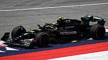 Mercedes a început sezonul 2023 cu îngrijorări cu privire la competitivitatea lor, Hamilton spunând că „nu sunt acolo unde își doreau să fie” după testele din pre-sezon.[56] El a terminat pe locul cinci în cursa de deschidere a sezonului, Marele Premiu al Bahrainului, la peste 50 de secunde în spatele câștigătorului Verstappen.[57] Hamilton a obținut primul său podium al sezonului în Australia pentru a-și extinde propriul record.[58] După ce a terminat consecutiv pe podium în Spania și Canada, el a ocupat locul trei în cursa de acasă de la Silverstone după ce a început de pe locul șapte pe grilă.[59][60][61] La Marele Premiu al Ungariei din 2023, Hamilton s-a calificat cu 0,003 secunde în fața lui Verstappen pentru a ocupa al 104-lea său pole position din cariera sa și primul după cel din Marele Premiu al Arabiei Saudite din 2021.[62] Înaintea Marelui Premiu al Italiei din 2023, Hamilton a semnat un contract pe doi ani pentru a rămâne cu Mercedes până la sfârșitul sezonului 2025. La Marele Premiu al statului Singapore din 2023, Hamilton s-a calificat pe locul cinci și a terminat cursa pe locul trei.[63] A încheiat sezonul pe locul 3 în clasamentul constructorilor după ce a mai obținut o clasare pe locul 2 în Marele Premiu de la Ciudad de México din 2023.