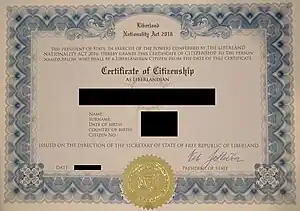 Jedlička a oferit inițial „cetățenia Liberland” pentru 10.000 de merite, echivalent 1:1 la USD,[65][15] însă mai târziu a redus-o la 5.000.[4][58] Va exista un plafon de 140.000 de cetățeni.[58]