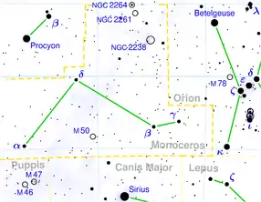 Licornul este o constelație mai puțin vizibilă aflată în estul faimosului Orion și în nordul celei mai luminoase stele din Câinele Mare (și de pe cer) - Sirius. Numai două dintre stelele sale ating o magnitudine aparentă mai mică de 4.