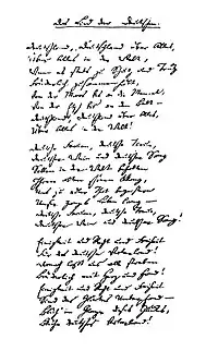 Reproducere a manuscriptului Das Lied der Deutschen lui Hoffmann von Fallersleben. Originalul este păstrat în Kraków, Polonia la colecția Berlinka.[1]