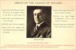 În vreme ce Primul Război Mondial era în plină desfășurare, mai multe guverne și grupuri începuse inițierea unor planuri de a schimba modul în care relațiile internaționale se desfășurau cu scopul de a preveni repetarea războiului.[21] Președintele Statelor Unite Woodrow Wilson și consilierul său, colonelul Edward M. House, au promovat cu entuziasm ideea unei Societăți ca un mijloc de a evita orice repetare a vărsării de sânge văzute în Primul Război Mondial, iar înființarea unei Societăți a fost un punct principal al celor paisprezece puncte pentru pace.[24] Mai exact, punctul final stipula că „se va forma o asociație generală de națiuni în vederea creării de garanții mutuale de independență politică și de integritate teritorială a statelor mari și mici.”[25][26]
