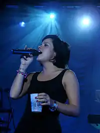 ![]() Lily Allen în timpul unui concert susținut la Somerset House în Londra, 2007. | |