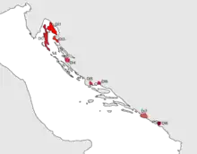 - raguzan, vorbit în partea de sud a Dalmației, îndeosebi în Raguza (astăzi Dubrovnik) care, după ce a fost vasală Veneției și Ungariei, a devenit independentă în secolul al XV-lea. Dialectul raguzan a fost, în secolul al XV-lea, înlocuit treptat de cel venețian apoi, pe măsură ce orașul se popula și cu croați, de limba croată în secolele al XVIII-lea - al XIX-lea.