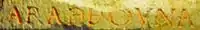 Majoritatea inscripțiilor păstrate dovedește că ordinea subiect-predicat-obiect a fost cel puțin posibilă, dacă nu chiar preferată de vorbitori[2]. Iată un exemplu (abrevierile folosite sunt explicate în caseta la dreaptă):