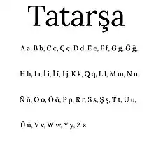 În 1956 este un alfabet latin dezvoltat de Institutul de Lingvistică al Academiei Române pentru Tătarul Român, cu literele Á á, Č č/Ç ç, Ğ ğ/C c, Î î/I ı, Í í/Ĭ ĭ, Ñ ñ, Ó ó/Ö ö, Ș ș, Ț ț/Ts ts, Ú ú/Ü ü.[3] Sunetele pentru literele î, ș și ț sunt din alfabetul românesc. Sunetele pentru literele č, ğ, j, ñ, w și y provin dintr-o varietate de limbi.[3] O nouă ortografie a fost dezvoltată în 2010, care este acum folosită de UDTTMR.[6] Alte alfabete au fost folosite de Taner Murat.[7][8] Alfabetul latin pe care îl folosea era de la Facultatea de Limbi și Literaturi Străine din cadrul Universității din București, cu literele Á, Ç, Ğ, Ñ, Î, Í, Ó, Ş, Ú. El a folosit și scrierea chirilică, inclusiv literele Ә, Җ, І, Ң, Ө, Ү, Ў. De asemenea, scrierea turcească veche și scrierea perso-araba , cu litera ڭ.