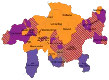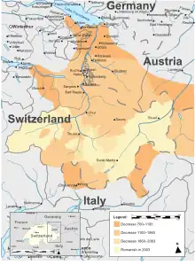 Regiunea retoromanofonă era cea mai puțin omogenă, cu 68,9% din rezidenți folosind limba națională. Pe de altă parte, numai ceva mai mult de jumătate din retoromanofoni, 18.000 locuiau în această regiune, 9.000 locuiau în restul cantonului Grisunilor, și 8.000 în restul Elveției, dintre care 990 la Zürich, orașul din afara cantonului Grisunilor cu cel mai mare număr de retoromanofoni.