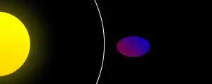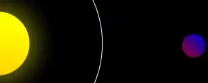 Consideraţi un corp fluid care îşi menţine structura prin gravitaţia sa şi care orbitează un obiect masiv, văzut aici de deasupra planului orbital. Departe de limita Roche, forma sa este sferică.