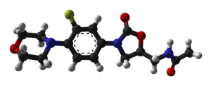 Linezolid este un antibiotic „de rezervă” din clasa oxazolidinonelor, fiind utilizat în tratamentul infecțiilor bacteriene cauzate de bacterii Gram-pozitive rezistente la alte antibiotice.[10][11] Spectrul de activitate al antibioticului include bacterii foarte rezistente precum streptococi, enterococ vancomicino-rezistent (VRE) și stafilococ auriu meticilino-rezistent (MRSA).[10][12]