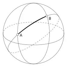 Pentru distanțe mai mari, linia dreaptă nu ia în considerare denivelările terenului, adică ridicăturile de teren sau clădirile, văile și diferențele de nivel, dar include forma sferică a Pământului. În acest caz, linia aeriană este „orizontală” și urmează curbura Pământului. Din punct de vedere matematic, linia aeriană aici corespunde unui arc de cerc care se află pe un cerc mare în jurul centrului pământului (a se vedea trigonometria sferică). Când astfel de distanțe sunt proiectate pe hărți plane, în general nu mai există linii drepte, ci curbe, care reprezintă totuși cea mai scurtă distanță între două puncte. De exemplu, linia directă dintre New York și Berlin trece peste Scoția.[1] În geometrie și navigație, se vorbește, așadar, mai precis despre ortodrome în loc de o „linie aeriană”.