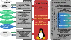 Deși inițial nu s-a intenționat ca Linux să fie un sistem de operare portabil, el este acum unul din cele mai mult portate nuclee de sistem de operare (deși NetBSD a fost portat și el pe aproape tot atâtea arhitecturi), rulând pe o gamă largă de sisteme, de la iPAQ (un calculator handheld) până la IBM System z9 (un server mainframe masiv care poate rula sute sau chiar mii de instanțe concurente de Linux). Linux este gândit pentru a rula ca sistem de operare principal pe noua arhitectură de supercalculator Blue Gene de la IBM, când aceasta va fi terminată. Linus a inclus, probabil în glumă, BogoMips în nucleu ca pseudo-unealtă de comparare a performanțelor.