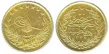 Monedă de 5 lire turceşti din anul 1906.