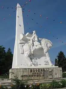 | Statuia ecvestră a lui Bogdan I | 1985 | Marius Butunoiu (1919-2001) | Localizată în parcul de vizavi de Mănăstirea Bogdana. Realizată din piatră. | ![]() |
