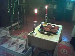 Litia este o slujbă care se ține la sfârșitul Vecerniei, Utreniei sau chiar la sfârșitul Sfintei Liturghii. Credincioșii aduc cinci pâinici ca semn de cinstire cu ocazia unor aniversării personale sau familiale, dar nu numai, cum ar fi ziua numelui. Cele cinci pâinici sunt o amintire a celor cinci pâini binecuvântate de Iisus Hristos în deșert și cu care au fost hrăniți cinci mii de persoane care îl urmau (Marcu 6). După ce este binecuvântată în timpul acestei slujbe, la sfârșit pâinea este tăiată și împărțită credincioșilor.