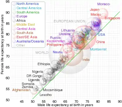 Longevitatea populației crește pe măsura creșterii speranței de viață în întreaga lume:[1][4]