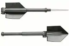 La varianta britanică din anul 1937 i s-a adăugat o baionetă în locul mânerului uneltei, montându-se unealta pe arma Lee-Enfield putea fi folosită la urmă drept instrument de localizare a minelor antipersonal.[10]
