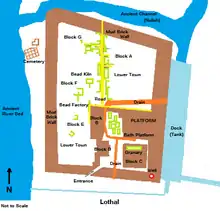 Lothal (AFI: [loˑt̪ʰəl]) era unul dintre cele mai sudice orașe ale civilizației antice din Valea Indusului,[1] situat în regiunea Bhāl din statul modern Gujarāt. Orașul a fost întemeiat în jurul anului 2200 î.Hr.[2] Descoperit în 1954, Lothal a fost excavat între 13 februarie 1955 și 19 mai 1960 de către Archaeological Survey of India (ASI), agenția oficială a guvernului indian pentru conservarea monumentelor antice. Potrivit ASI, Lothal avea cel mai vechi doc cunoscut din lume, care lega orașul de cursul din antichitate al râului Sabarmati pe ruta comercială dintre orașele harappane din Sindh și peninsula Saurashtra, când deșertul actual Kutch din jur încă era sub Marea Arabiei. Cu toate acestea, această interpretare a fost contestată de alți arheologi, care susțin că Lothal era un oraș relativ mic și că „docul” era de fapt un rezervor de irigare.[3] Controversa a fost într-un sfârșit soluționată când oamenii de știință de la Institutul Național de Oceanografie din Goa au descoperit foraminifere (microfosile marine) și sare, cristale de gips în structură dreptunghiulară, indicând clar că apa de mare a umplut cândva structura și că era cu siguranță un șantier naval.[4] Lothal a fost un centru comercial înfloritor și plin de viață al vremurilor străvechi, comerțul său cu mărgele, pietre prețioase și ornamente valoroase ajungând în colțurile îndepărtate ale Asiei de Vest și ale Africii. Tehnicile și instrumentele pe care le-au inventat pentru fabricarea mărgelelor și în metalurgie au rezistat testului timpului de peste 4000 de ani.[5]