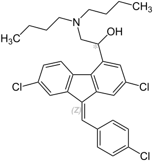 Lumefantrina (denumită și benflumetol) este un medicament antimalaric derivat de fluoren, fiind utilizat în tratamentul malariei, dar în asociere cu artemeter (co-artemeter).[7][8][9] Calea de administrare disponibilă este cea orală.[8]
