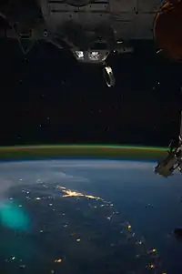 Strălucire a cerului nocturn, vizibilă de pe SSI