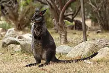 |date=(ajutor) - Punga scrotală este aproape unică între marsupiale; singura altă specie care prezintă această trăsătură este oposumul de apă, Chironectes minimus, răspândit în Mexic, America Centrală și de Sud.