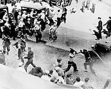Război de clasă socială: șoferii de camioane se luptă cu poliția în cursul Minneapolis Teamsters Strike din 1934.