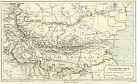 - 1 Sud – axat pe drumul Vidin - Nazâr-Mahala, ocupat de Divizia a 4-a și aflat între Dunăre[8] și pârâul Belarada, în dreptul satului Tatargik
