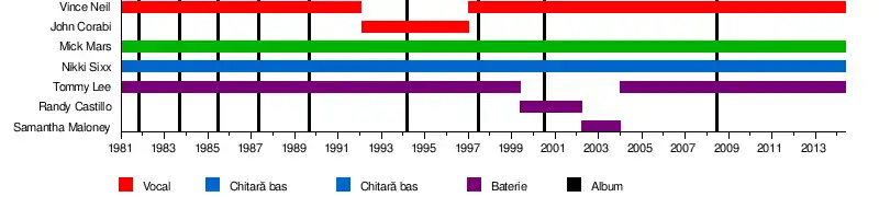 ![]() Mötley Crüe în 2008. Stânga-dreapta: Nikki Sixx, Tommy Lee, Mick Mars, Vince Neil | |