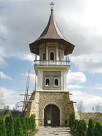 Turnul-clopotniţă privit din interiorul mănăstirii
