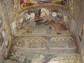 Tabloul votiv din pronaos, în dreptul ușii de la intrare, îl reprezintă pe ctitorul Mihail Colțescu, cu soția Catrina și familia lui; în stânga ușii, pe fiul lui, Mihalache Colțescu, cu soția Luxa și familia. Pictura din anul 1831 este opera lui Matei si Gh. Zugravu și reprezintă scene biblice de o mare frumusețe.