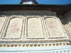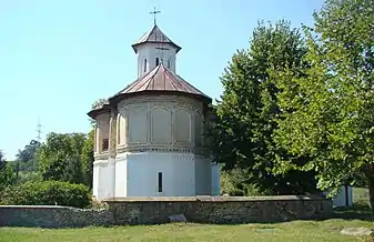 Mănăstirea este împrejmuită cu un zid de apărare, făcut din piatră de râu.