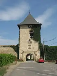 Turnul clopotniță a fost construit în anul 1670 în partea de sud a mănăstirii, având și rolul de loc de intrare în mănăstire. El nu dispunea de metereze, având doar niște găuri rotunde de ochire, cioplite în piatră, pentru tragerea cu pușca.