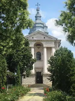 Biserica actuală este un monument din prima jumătate a secolului al XIX-lea, construită în stil ucrainean. Fațadele sunt ornate în stil clasic cu panouri și pilaștri angajați. Fațada are intrarea decorată cu un înalt portic doric format din patru coloane, cele din mijloc fiind unite printr-o arcadă în cintru.