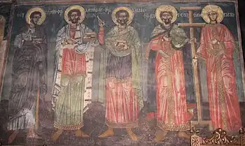 Tabloul votiv aflat pe peretele de sud al naosului. Aici sunt pictaţi noii ctitori: Vasile Lupu, Ştefăniţă Lupu şi Doamna Ecaterina, îmbrăcaţi în costumele de ceremonie.