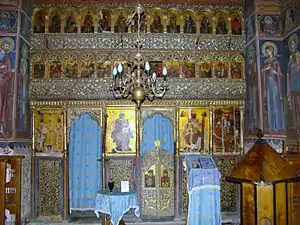 Catapeteasma din lemn a paraclisului fin sculptată și decorată cu aur