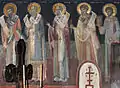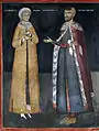 În pronaos, pe pereții de la sud, vest și nord sunt zugrăvite portretele ctitorilor astfel, conform inscripțiilor: