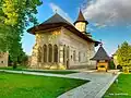 Imagine de ansamblu a curții interioare a mănăstirii Probota