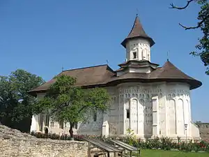 Inițiativa de a picta pereții exteriori ai mănăstirilor din nordul Moldovei a aparținut domnitorului Petru Rareș. De-a lungul a câtorva decenii, începând cu Biserica "Sf. Gheorghe" din Hârlău (1530) și încheind cu Biserica Voroneț (1547), un număr de 15 biserici moldave au fost împodobite cu fresce de o rară frumusețe. Această mișcare artistică s-a stins însă într-o perioadă relativ scurtă. Există desigur două excepții, și anume pictarea la exterior a mănăstirilor Râșca și Sucevița în anul 1552, respectiv 1596.